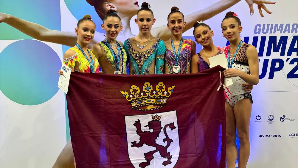 El Club Ritmo sigue llevando la bandera de León a lo más alto. Esta vez fue en Portugal, donde las gimnastas del club leonés hicieron ondear la bandera en el podio. Nada más y nada menos que en 19 ocasiones sonó el nombre de León y del Club Ritmo para reclamar a una de sus gimnastas al podio del Torneo Internacional Guimagym Cup de Guimaraes.