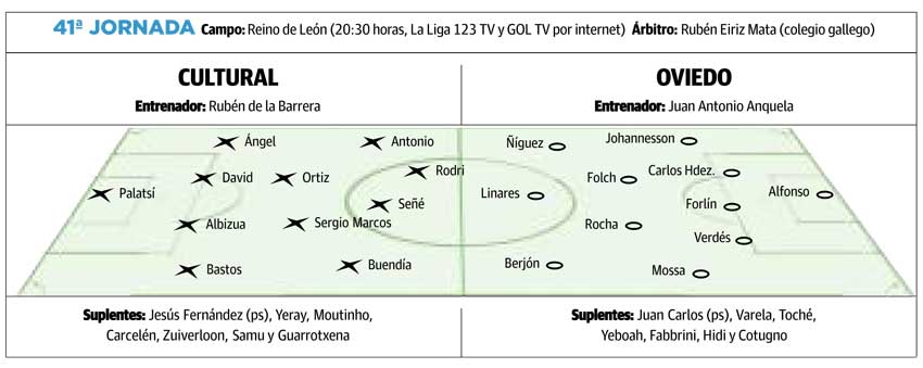 Ángel, Ortiz y Unai apuntan al once de una Cultural que no cuenta con Ideguchi, Salvador ni Iván González ¿En lo deportivo? Rubén de la Barrera tendrá que suplir la ausencia por lesión de Iván González, que se había hecho fijo en el centro de la zaga en las últimas semanas, siendo de los más destacados en la mejor racha culturalista de la temporada, pero que no podrá ser de la partida tras ser expulsado en Tarragona.