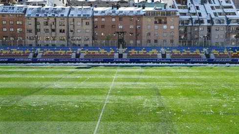 Y es que a partir del miércoles se espera una drástica bajada de temperaturas en el Principado, que desplomará las mínimas ese mismo día hasta los 11 grados bajo cero. Así mismo se espera que la nieve haga presencia en los Pirineos y es precisamente esa situación la que pondría en peligro la disputa del partido del sábado. Ahora mismo las previsiones esperan más de 10 centímetros de nieve en Encamp, localidad próxima a la capital Andorra la Vella en la que se ubica el campo de la FAF: Además, no solo eso, sino que a la propia hora del partido se espera que nieve y que la sensación térmica sea de unos 5 grados bajo cero, con la temperatura máxima para ese día en -2. El Andorra ya ha visto como en las horas previas a sus partidos ante Castellón o Almería la nieve ha cubierto el campo, si bien ambos partidos pudieron disputarse sin mayor complicación.