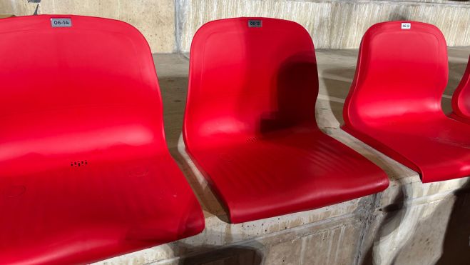 El Reino de León estrenó nuevos asientos rojos en toda la zona oeste del campo en el triunfo frente al Málaga, con otras dos estando ya listas para el próximo encuentro frente al Granada y, si no da tiempo a una cuarta para ese día, todo el campo al completo estando ya con su nueva cara para la cita ante el Huesca.