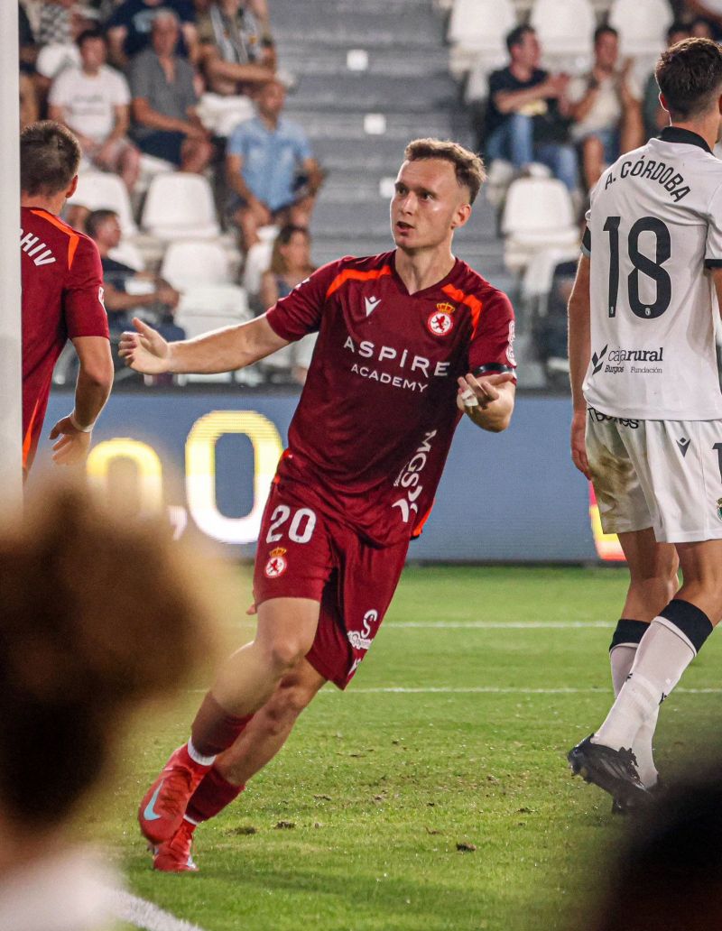 Error en salida de Satrústegui, ataque del Burgos y agarrón de Diallo a David González tras superar a Larios. Roja clara y penalti que cambió por completo el partido para los dos equipos. Curro fue el encargado de transformar la pena máxima al minuto de partido. En inferioridad y con errores llegaron los otros goles de Fer Niño y Curro en otro centro lateral, el gran problema de esta Cultural. Recortó distancias Tresaco, que fue el mejor de los suyos con una jugada personal en banda derecha, con caño incluido, que termina con Córdoba introduciendo el balón en su portería tras el centro del extremo aragonés.
