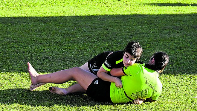 El salto de Priscila a medios propició una estampa triste en ligeros, solo dos luchadoras, cierto de Isa es baja por lesión pero... venció María Cadenas, dos corros casi en horas, ante Ana Díez de Celis, la luchadora de Prioro que desespera a su padre con su escaso gusto por entrenar. Cree Alberto que algo que le enseñe él y con que tenga un 1% de la calidad de su abuelo, el gran Cayuso, ya tendríamos una excelente luchadora pero ella sonríe... como sonreía feliz una María Cadenas que es cierto que ayer lo tuvo más fácil pues solo eran dos, pero la de Lorenzana sigue dando pasos para ser la luchadora que apunta, con una tremenda juventud.
