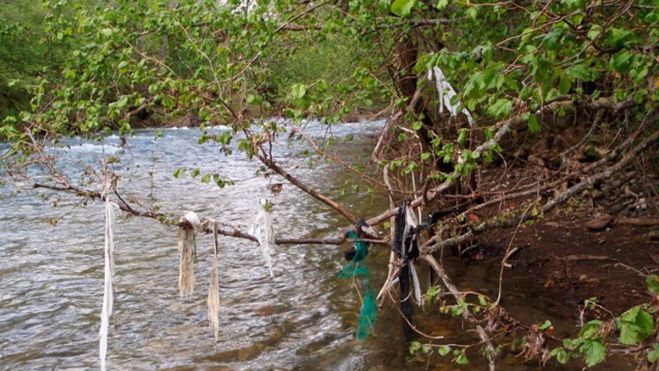 Lo que más abunda son bolsas y botellas, pero también desde hace unos años aparecen grandes plásticos de polietileno que emplean las envolvedoras para empaquetar las pacas y proteger el forraje. Algunos domingueros, que usan el río como lugar de ocio y disfrute, son incapaces de recoger y llevarse sus basuras, como si estassupieran llegar solas al contenedor. También, hay que decirlo, algún que otro pescador se olvida de que los restos de los aparejos contaminan y mucho. Todo lo que no se utiliza y no se recicla, más temprano que tarde, aparece en el río.