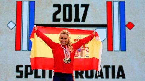 A la haltera berciana se le escapó el oro en arrancada, pero remontó en dos tiempos para llevarse el total olímpico y su tercer título continental