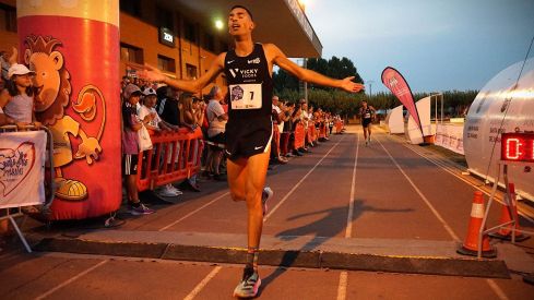 De esta forma a las 21:10 horas daba salida la carrera absoluta, y aunque durante la primera de las vueltas se estableció un grupo de 8 corredores en cabeza, la carrera se decidió en los últimos 300 metros, donde el atleta coyantino Daniel Alonso se impuso a Vicente Viciosa con sólo 4 segundos de distancia, para establecer un tiempo de 16 minutos y 30 segundos. El tercer puesto fue para el corredor Iván Manceñido a 18 segundos de Daniel.