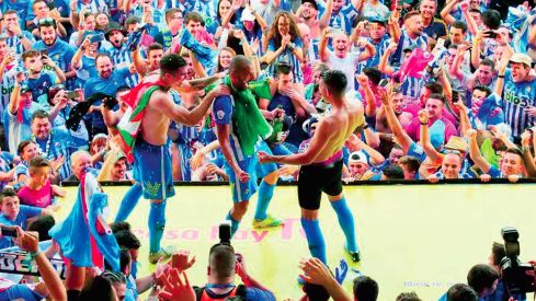 El equipo berciano se desató en una fase de ascenso en la que ganó todos los partidos menos el primero que jugóUna fase de ascenso espectacular en la que tras perder el primer partido en Cornellá (2-1) la Deportiva de Jon Pérez Bolo ganó el resto de partidos. Así, tras eliminar al conjunto catalán en la primera ronda hizo lo propio con el Cartagena en la segunda y el Hércules en una final por el ascenso que dejó vista para sentencia ya en la ida con un contundente 1-3 que redondeó en El Toralín (1-0) para hacer estallar en júbilo a la parroquia blanquiazul el pasado 29 de junio. Se desató ofensivamente en esa fase de ascenso la Ponferradina con un sensacional Isi Palazón a la cabeza para regresar al fútbol profesional, donde apostó por mantener a una gran parte del bloque que logró el ascenso y que por el momento le está dando grandes resultados ya que el equipo ha finalizado la primera vuelta más cerca de los puestos de ‘playoff’ que de los de descenso con 30 puntos que invitan a pensar en una permanencia casi encarrilada.