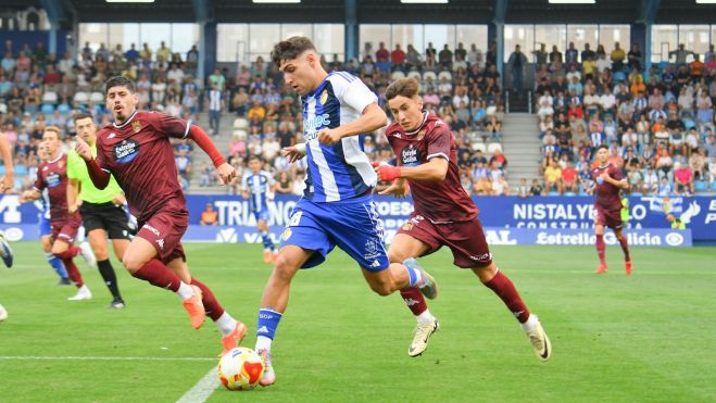 Un eléctrico inicio hizo pensar que al cosa sería más sencilla de lo que terminó siendo. La Deportiva se apuntó varias buenas ocasiones en busca de un gol tempranero como el pasado fin de semana en Avilés, pero la cosa se atascó. Comenzó Borja Vázquez tirando de picardía y juventud poniendo la primer jugada en el primero minuto, aunque fue Nóvoa el que se encargó de rematar a puerta inmediatamente después, encontrándose con Marqueta.