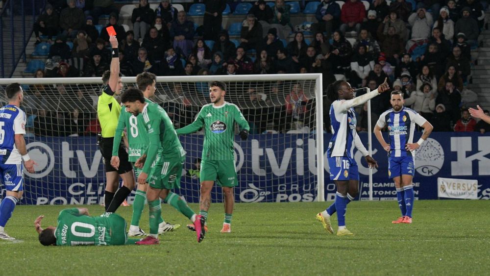 Por segunda semana consecutiva, la Ponferradina vio como terminar el partido con un jugador menos tras la más que polémica expulsión de Frimpong ante el Racing de Ferrol, en un partido donde Undabarrena, que había vuelto al once y con un gran rendimiento, viese su quinta amarilla y tendrá que descansar ante el Guadalajara este domingo.