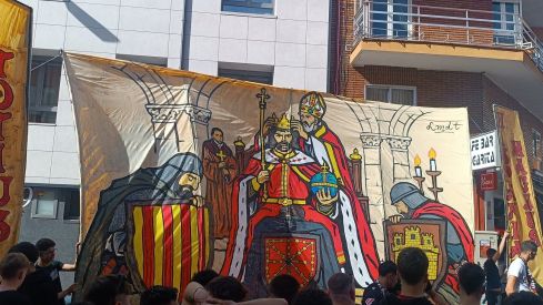 Uno fue el tifo creado por la peña Orgullo Cazurro, con los condes castellanos rindiendo pleitesía al rey de León, que exhibieron antes del encuentro puesto que, al contrario de lo que sucede en la mayoría de los estadios del fútbol profesional donde esas imágenes se convierten en virales cuando se muestran en las gradas, en el Reino no se permiten introducir dentro del campo por la prohibición de los encargados de la seguridad.