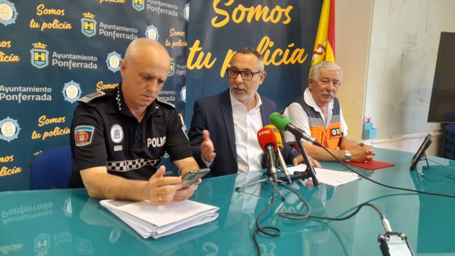El concejal de Seguridad de Ponferrada, Carlos Cortina, el intendente jefe de la Policía Municipal de Ponferrada presentaron el Plan integral de seguridad previsto para este verano 2025, con el que se pretenden minimizar los delitos contra el patrimonio de los vecinos, especialmente prestando atención a viviendas y comercios y también a personas.
