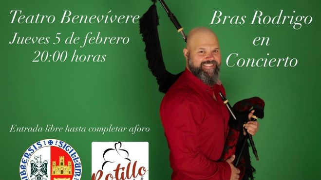 El gaitero internacional y director de los desfiles de San Patricio de Madrid y Lisboa, Bras Rodrigo, actuará el jueves 5 de febrero, a las 20:00 horas, en el Teatro Benevivere. La actuación se incluye en la programación de la Semana Cultural del LIII Festival Nacional de Exaltación del Botillo de Bembibre con entrada gratuita.