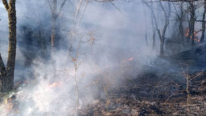 El incendio se originó, por causas que todavía se desconocen, sobre las 16.27 horas de este domingo y e inmediatamente se desplazaron hasta el lugar agentes medioambientales, una cuadrilla terrestre, una autobomba, y medios aéreos de la Brigada de Refuerzo en Incendios Forestales (Brif) de Tabuyo del Monte.