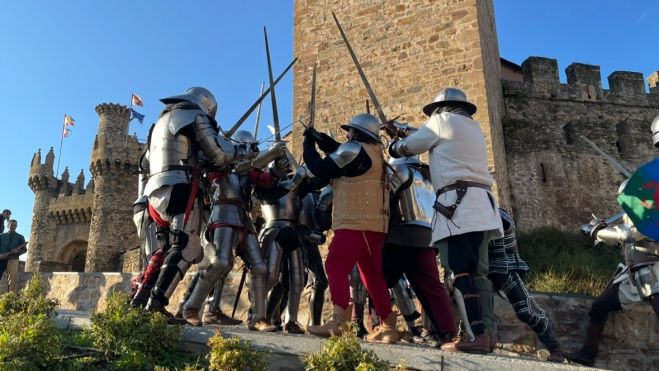 La recreación de las revueltas irmandiñas en Ponferrada tuvo su momento principal este sábado con la batalla frente al Castillo de los Templarios. Vecinos y visitantes presenciaron cómo los grupos de recreación representaban el enfrentamiento entre los irmandiños y las tropas señoriales, recordando los conflictos del siglo XV que marcaron Galicia y el Bierzo.