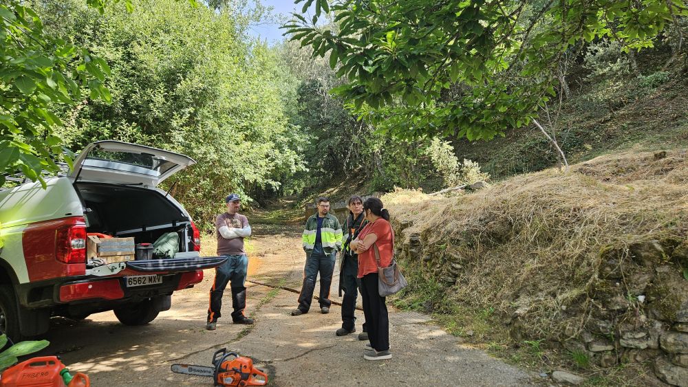 La diputada de Transición Ecológica, Lucía Osorio, ha visitado este lunes en Langre, Berlanga del Bierzo, a una de las cuadrillas contratadas para conocer de primera mano los trabajos que realizan.