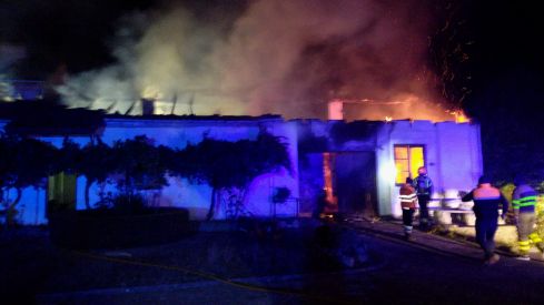 A su llegada, los bomberos comprobaron que las llamas se habían propagado por la totalidad del edificio y buena parte de la cubierta, por lo que las labores se centraron en evitar que el fuego alcanzara un inmueble colindante y en la completa extinción del incendio, que se prolongó hasta aproximadamente las 2:30 horas. En el interior del edificio había un vehículo y diversos enseres que quedaron completamente calcinados.