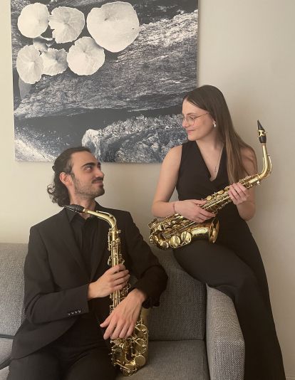 Le acompaña la murciana Rosa Cánovas Pallarés, que actualmente estudia en Asturias el Grado Superior en Pedagogía en la especialidad de saxofón. Ambos integrantes, antes que saxofonistas son músicos, y por ello tienen la preocupación de escuchar y descubrir nuevo material que puedan adaptar para esta formación. Su objetivo es presentar siempre en concierto una propuesta diversa e interesante que pueda cautivar y especialmente emocionar al público.