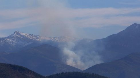Efectivos de la Consejería de Fomento y Medio Ambiente terrestres y aéreos intervienen la extinción de un incendio forestal registrado este tarde en la localidad berciana de San Adrián de Valdueza, en el municipio de Ponferrada. Aunque las llamas, acompañadas de una notable presencia de humo visible desde parte de la comarca, comenzaron cerca de la localidad, parece que no reviste peligro para las casas, según confirmaron fuentes consultadas por Ical.