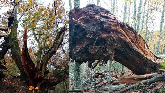El temporal de viento, agua y nieve de los pasados días ha herido duramente al 'Campano', el gran castaño de Villar de Acero, casi milenario, de 16 metros de perímetro y 32 de altura, considerado el árbol más grueso de la península.