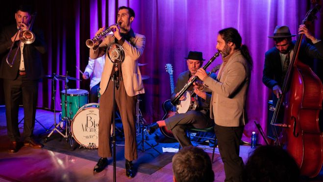 La fachada de la Oficina de Turismo será el escenario de calle por el que pasarán formaciones como la Barba Dixie Band, una original propuesta que nos hará viajar hasta las calles de la New Orleans de los años 20; Eme Eme Projet, el nuevo proyecto de la flautista y compositora Marta Mansilla y la Tropical Moon Jazz Band, sexteto de jazz parisino y música criolla que recupera el espíritu y sonido del maravilloso Sidney Bechet. Estos conciertos serán a las 19:30 horas, previos a los de sala, que se celebran a las 21 horas.
