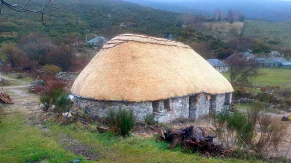 Para esta construcción de estilo rústico, ubicada en la aldea de Campo del Agua, se han utilizado materiales como barjos (una losa de piedra de forma rectangular) para separar el agua de lluvia del muro; cuelmos obtenidos de las cañas de centeno y que recubrirán la parte superior del tejado; y vincallos, cuerdas de caña que sirven para unir varios cuelmos hasta conseguir un espesor medio de 35 centímetros.