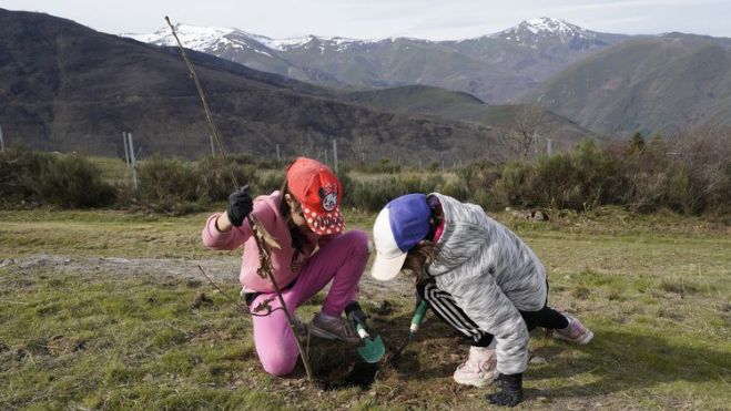 La recuperación de los montes afectados por los incendios del pasado verano en la comarca ha dado un nuevo paso con la puesta en marcha de una iniciativa de reforestación en la que participarán escolares del Bierzo. Bajo el nombre de ‘Guardianes del Bosque’, el proyecto se iniciaba hoy, con tres jornadas de plantación en la localidad de San Cristóbal de Valdueza.