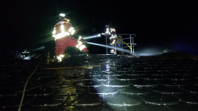 Cuando llegaron, el fuego estaba afectando únicamente a la cubierta de la casa, y había vecinos del pueblo intentando controlarlo. Los bomberos procedieron a realizar un ataque inmediato por el interior junto a trabajos desde el exterior con el apoyo del vehículo en altura, logrando controlar el incendio en torno a las 21:19 horas, aunque las tareas de remoción y remate se prolongaron hasta las 23:20 horas, aproximadamente.