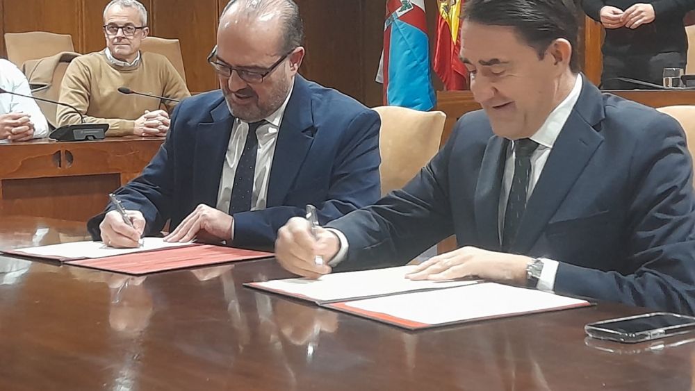 El consejero de Medio Ambiente, Vivienda y Ordenación del Territorio, Juan Carlos Suárez-Quiñones, firmó este miércoles un protocolo de colaboración con el Ayuntamiento de Ponferrada para la financiación, ejecución y entrega de una entrada a la Estación de Tratamiento de Agua Potable (ETAP) provisional, que permitirá la canalización de agua desde Montes hasta San Clemente.