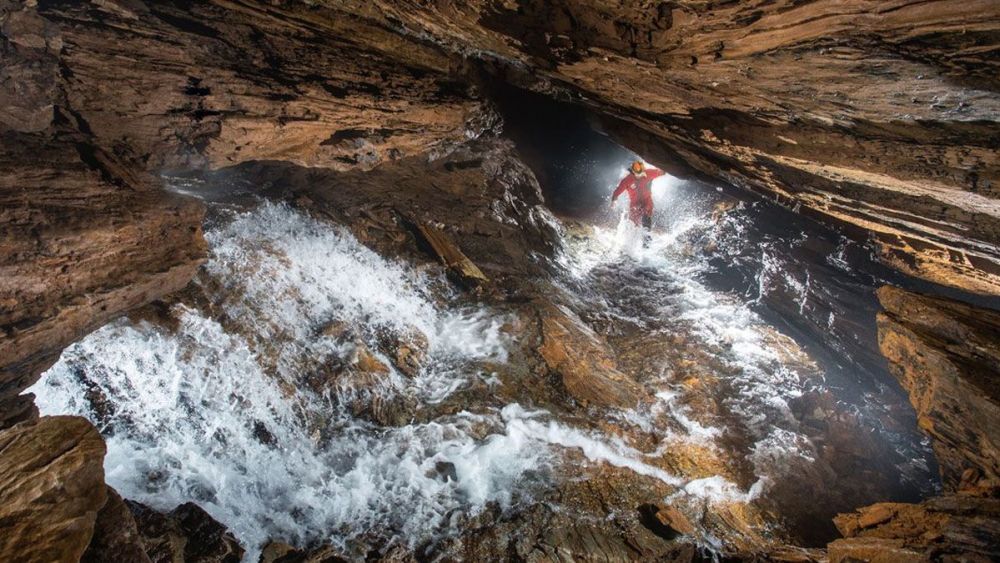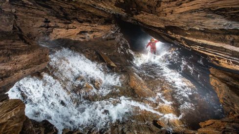La imagen de un espeleólogo berciano, primer premio internacional de fotografía subterránea