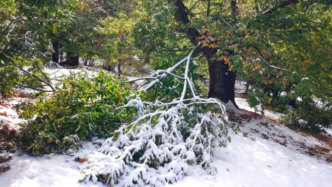Uno de los castaños dañados por la nieve enSanta Cruz del Sil. | D.M.