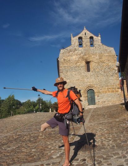 El peregrino a su paso por Villafranca del Bierzo con la sonrisa delCamino. |Daniela Carmona