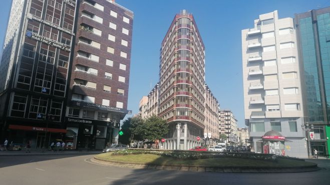 Uno de ellos, en una esquina, con acceso por la avenida de La Puebla, número 52, fue mandado construir por los hijos de Venancio García, los mismos propietarios del ubicado en la plaza Fernando Miranda, conocido como el edificio de la Campana. Inmueble del año 1951, cuyo proyecto fue encargado a Luis Pidal y Fernández Hontoria —IV marqués de Pidal—, con Ramiro Fernández como aparejador. En el interior del portal, en una puerta de madera con cristal, se pueden ver las iniciales HVG (Hijos de Venancio García). Desde su terraza, en el ático, se otea una hermosa panorámica de gran parte de la zona baja de nuestra ciudad. Inmueble burgués, con bella y elegante fachada de líneas clásicas que, en su mayoría, da a la plaza Lazúrtegui. Edificio de prestigio de aquella 'ciudad del dólar'.
