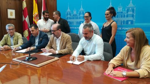 El alcalde de Ponferrada, Marco Morala y el responsable de la Cámara de Comercio en El Bierzo, Javier Morán firmaron un nuevo convenio para activar los Bonos comercio 'Yo Ponferrada ¿tú?, anualidad 2025' con 82.000 euros aportados entre el Ayuntamiento de Ponferrada, con fondos propios y de la Junta en su mayor parte, el 75%.