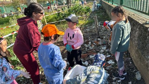 Proyecto Orbanajo se ha acercado al colegio de Flores del Sil para, con las niñas y niños de Segundo de Primaria, limpiar lo que con el paso de los años se ha ido acumulando en una finca colindante al patio del colegio.