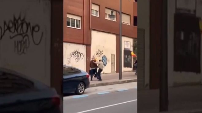 "Es hora de dejar de lado la confrontación" se le escucha decir a la narradora mientras se observa al socialista berciano recibir patadas y empujones en el segundo 45 del vídeo.