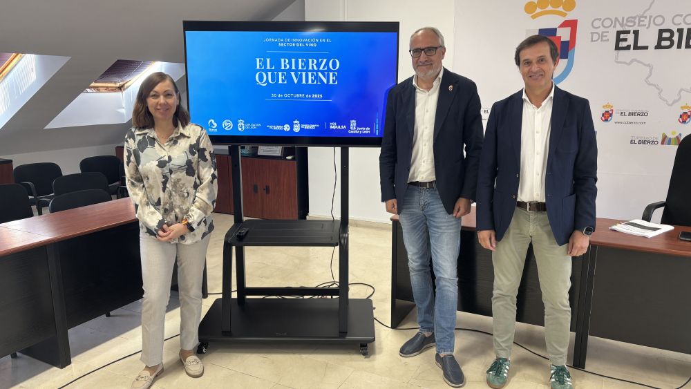 Para hablar de estas oportunidades, planes colectivos, ayudas, estrategias de comercialización y vías de innovación, el Consejo Comarcal del Bierzo, el Banco de Tierras y el Consejo Regulador de la Denominación de Origen Bierzo se unen para celebrar la jornada 'El Bierzo que viene', que se celebrará el jueves 30 de octubre en la sede de la DO en Cacabelos. Este miércoles la presentaron los máximos representantes de las tres instituciones: Olegario Ramón, Beatriz Anievas y Adelino Pérez, respectivamente.
