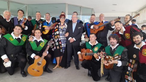 A las puertas del templo, sus hijas habían preparado una sorpresa única: unir a representantes de tunas de todo el país para cantar con ellos Adelita, Clavelitos y un sin fin de temas conocidos que hicieron que la pareja no pudiera dejar de bailar.