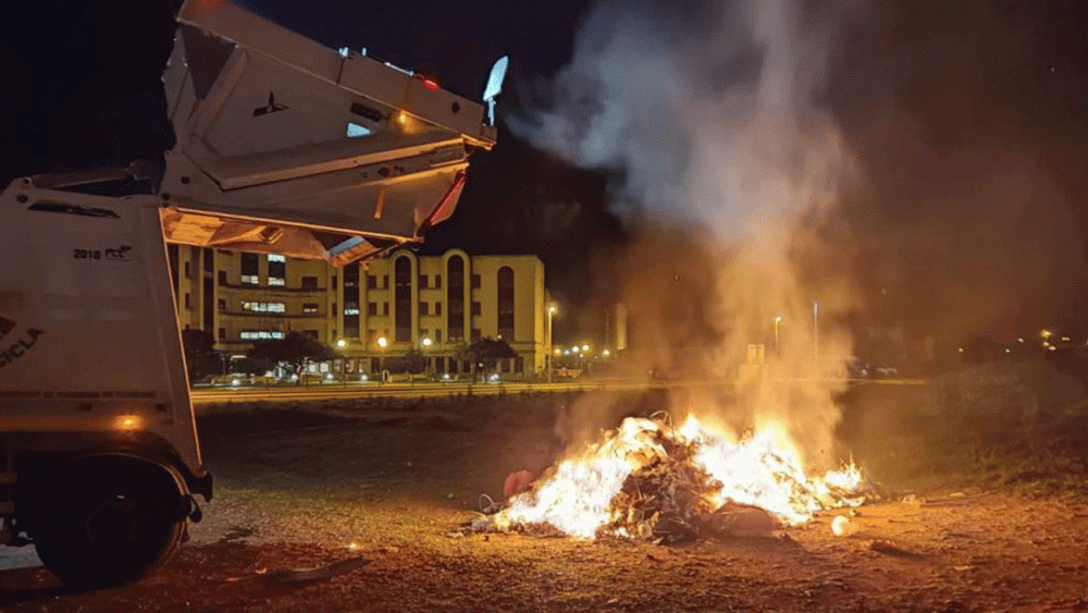 Miembros de la Policía Nacional inspeccionaron los restos de basura quemados y recogieron los objetos sospechosos para su posterior análisis por su unidad científica.