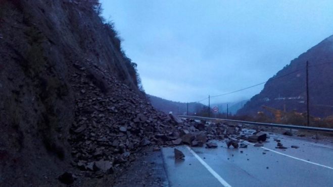 La maquinaria trabaja en la zona afectada desde primera hora pero además de retirar el material que se encuentra sobre la calzada se intentarán evitar o controlar posibles nuevos desprendimientos que podría provocar la lluvia.