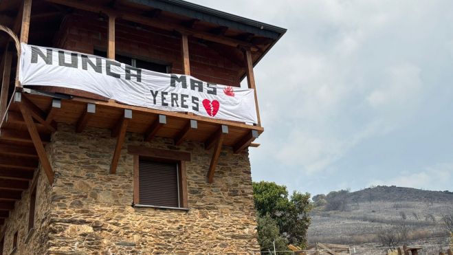 En su fachada ha colocado una gran pancarta con una frase: ‘Nunca más’. "Es lo que queremos. Lo he puesto en mi casita-milagro. Quizá esto se podría evitar. Patrimonio es algo más que cuidar el monte, es escuchar a la gente que siempre ha vivido ahí. Hay gente que sabe cómo tiene que estar el monte y patrimonio es proteger a la gente", explica a Ical después de recordar, todavía con tensión, que las llamas llegaron prácticamente a la puerta de sus casas.