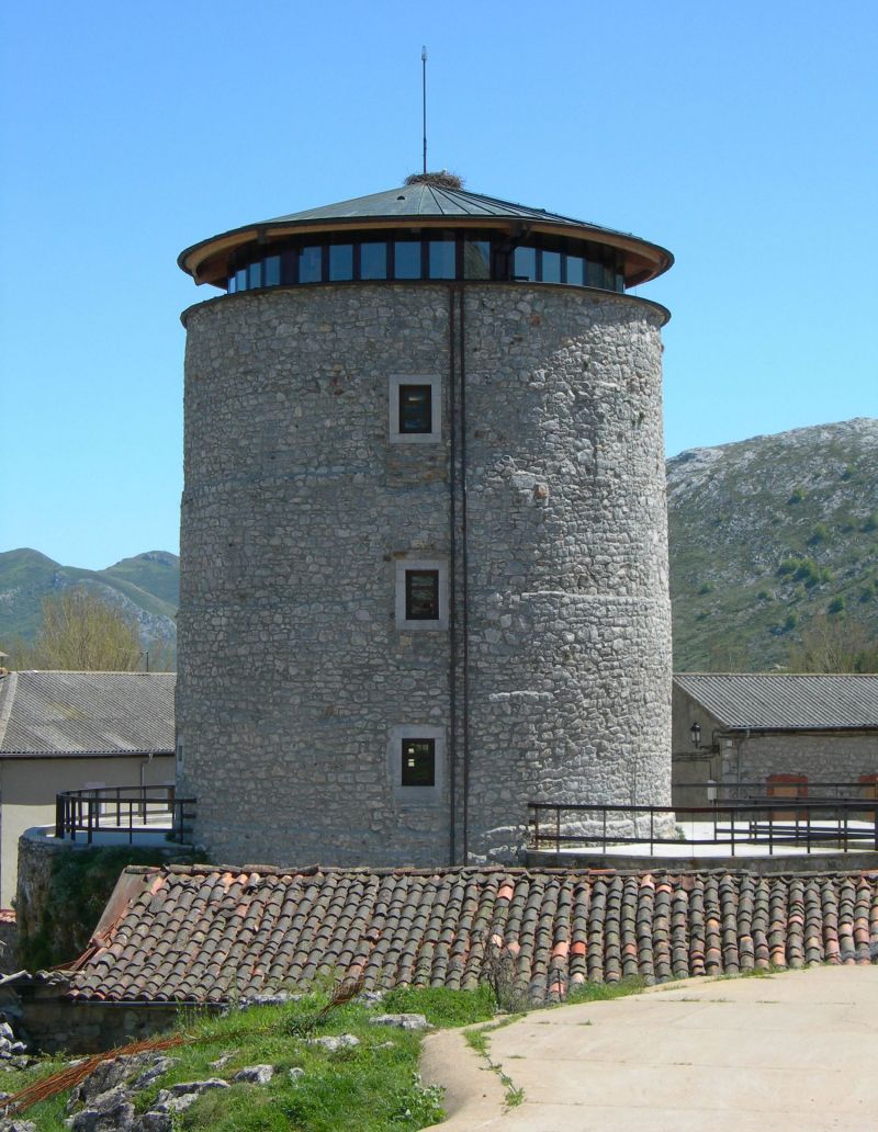 Es cilíndrico, consta de tres plantas, tiene ocho metros de diámetro y con muros de dos metros de grosor. A lo largo de los siglos, este edificio, una vez abandonado por sus señores feudales, ha acogido casi todas las actividades posibles. Sufrió un devastador incendió en 1791, hasta que en 1913 pasó a ser durante un tiempo edificio del Ayuntamiento. Abandonado y arruinado durante décadas, fue restaurado para convertirse en centro cultural y de interpretación del Parque Regional de la Montaña de Riaño y Mampodre.