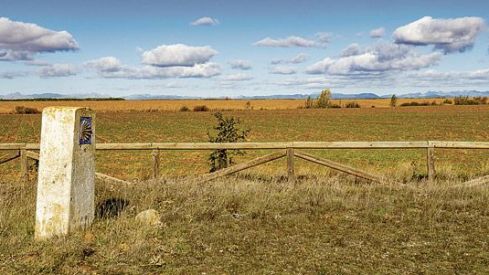 En la imagen, indicadores del Camino que marcan el paso en el municipio del Burgo Ranero. VICENTEGARCÍA