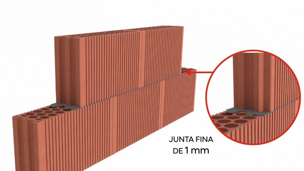 Gracias a su morfología y calibración dimensional, el sistema permite su colocación sin mortero tradicional, utilizando una junta de pegamento fina de solo 1 mm. Esto se traduce en una reducción de tiempos de ejecución, simplificación de procesos, mayor limpieza en obra y un notable incremento de la productividad.