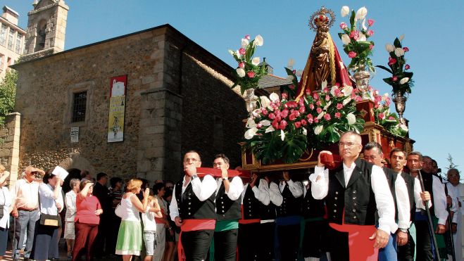 Los desfiles de gigantes y cabezudos, con más de 200 años de historia, representan figuras de la nobleza y personajes locales inspirados en leyendas bercianas. La música tradicional, con bandas de gaitas y tamboriles, ha sido protagonista de la festividad desde hace más de un siglo, y hoy se suman agrupaciones llegadas de Galicia, Asturias y León, manteniendo viva la riqueza musical de la región.