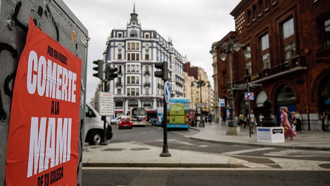 Reconoce el F.Otero que no recuerda cómo y cuándo hizo la foto de hoy pero tampoco lo va a consultar pues no cree que los datos añadan nada a lo que le parece más llamativo, la pancarta, su texto: «Por fin puedes comerte a la mami de tu colega». Tal cual.