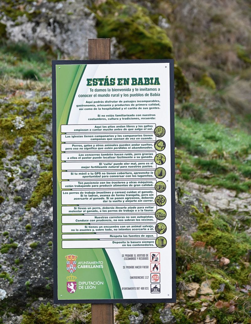 En Babia, en Quintanilla, tienen otra fórmula, que es el aviso, en vez de explicarlo en presidente lo ponen en paneles que te avisan de cómo van las cosas allí, donde las pitas andan libres y los gallos cantan mucho antes de que salga el sol; que las iglesias tienen campanas y las campanas se tocan y suenan; que los cencerros también hacen ruido y el ‘cuitu’ (abono) huele mal pero es buen fertilizante; que los mastines y careas están trabajando y si ladran es para avisarte de que los dejes tranquilos, como a cualquier obrero...