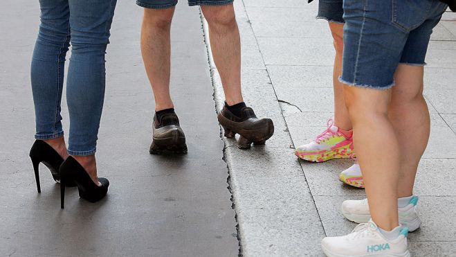 ¿Qué les une? ¿cómo maridas, ahora que manda la gastronomía en todo, unos zapatos de tacón de aguja con unas zapatillas de cuadros de felpa con madreñas? ¿se había visto alguna vez en la historia de la ruralidad unas madreñas con pantalón corto? ¿no habíamos dado por bueno que el salto de los rapaces de los chanclos a las madreñas iba parejo con el salto del pantalón corto al largo? ¿no se da cuenta esa rapaza del tacón de aguja que si van a la discoteca a su colega de las madreñas no le dejan entrar?
