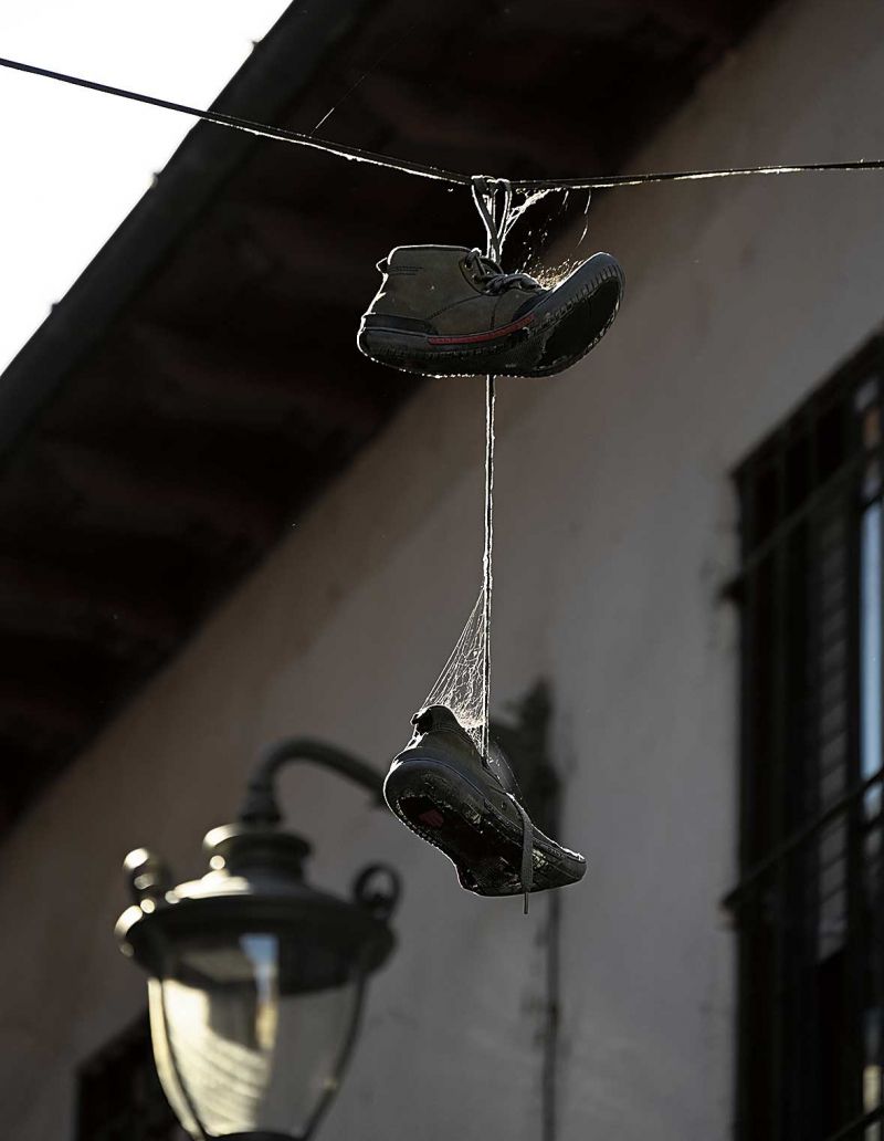 Pues esa paz casi imposible de romper saltó por los aires como casi nunca cuando en los cables ‘del tendido’ aparecieron en diferentes puntos del pueblo botas colgadas por sus cordones.