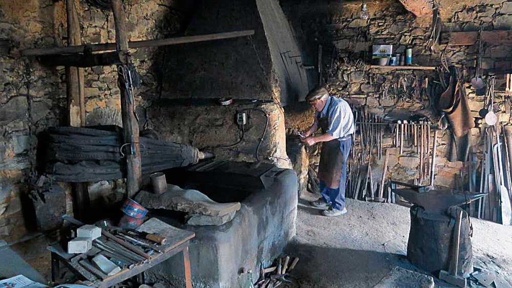 Cuando era un rapaz me gustaba ir con mi padre a ver a Ramón a la fragua. Me llamaba Cachorrico porque a mi abuelo le llamaban Cachorro. Era entrar en aquel espacio de sacralidad tenebrosa, situado al borde de la nacional seis, y experimentar la satisfacción más absoluta. Lo veía ir de acá para allá, con aquel mandil de cuero impregnado de la mugre que deja la manufactura del hierro. Me ponía a su lado cuando se acercaba al fogón para que me dijese cuál era el estado ideal del hierro para ser moldeado a golpe de martillo. Pero antes avivaba el fuego. Y era entonces cuando el chisporroteo del carbón, vivificado por aire del fuelle, le confería a Ramón ese aire místico que siempre tuvieron los herreros.