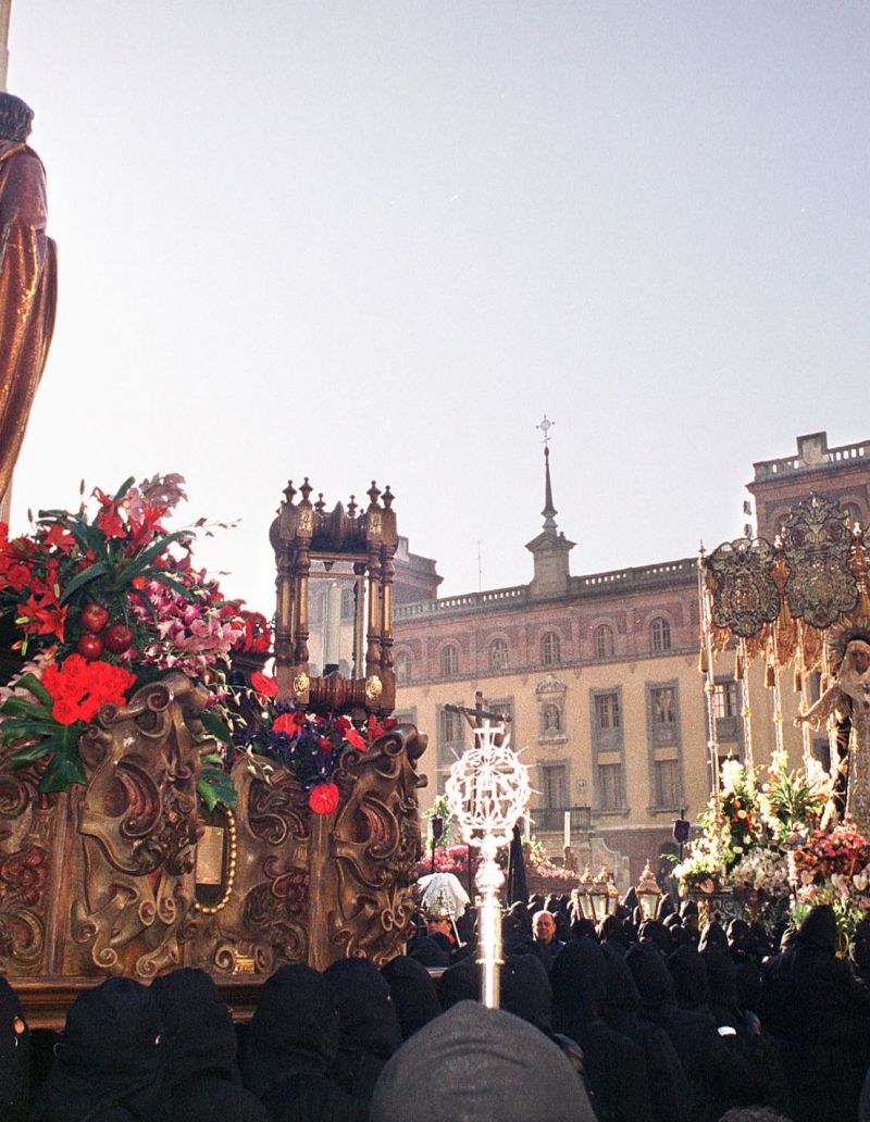 Se cumplen en 2026 veinticinco años de la primera emisión de una procesión leonesa a través de internet –también se transmitiría en la televisión local, aunque eso no era ya novedad–, en una época en la que la red de redes comenzaba a generalizarse. Fue en la de los Pasos, el Viernes Santo de 2001, –13 de abril–, durante el Encuentro; un Encuentro que tuvo lugar ante la catedral, como también el año anterior, debido a la construcción del aparcamiento subterráneo de la plaza Mayor.