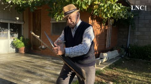 Le vas a dar la mano para ayudarle a levantarse del suelo después de la demostración de cómo se pica la guadaña —«cabruñar le dicen también»— y no la necesita: «Deja, deja, ya me levanto yo». Y lo hace con evidente agilidad, imposible calcularle los noventa años que tiene, por ese y otros muchos detalles más.